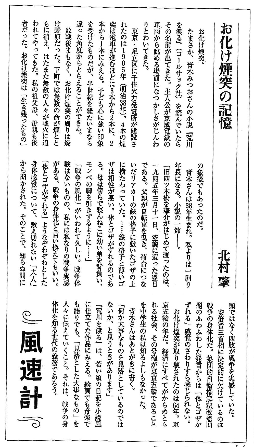 | 2014年10月23日 | 『海を越える翼』が週刊きたかみで紹介されました |