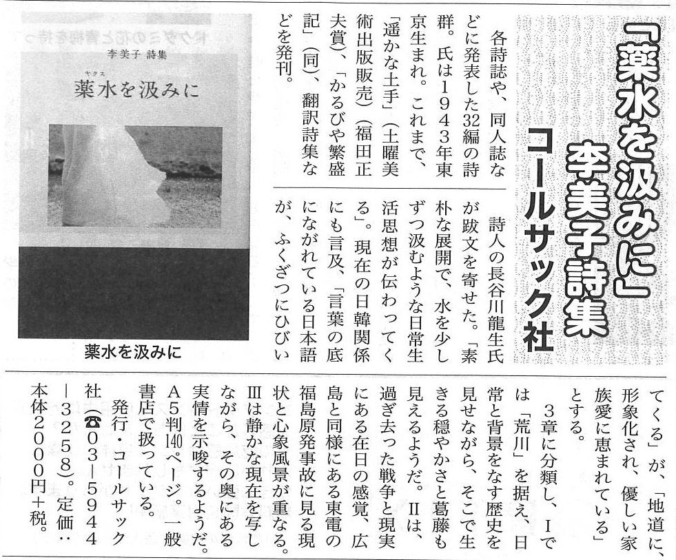 | 2014年11月21日 | 速水晃詩集『島のいろ』が東京新聞夕刊で紹介されました |
