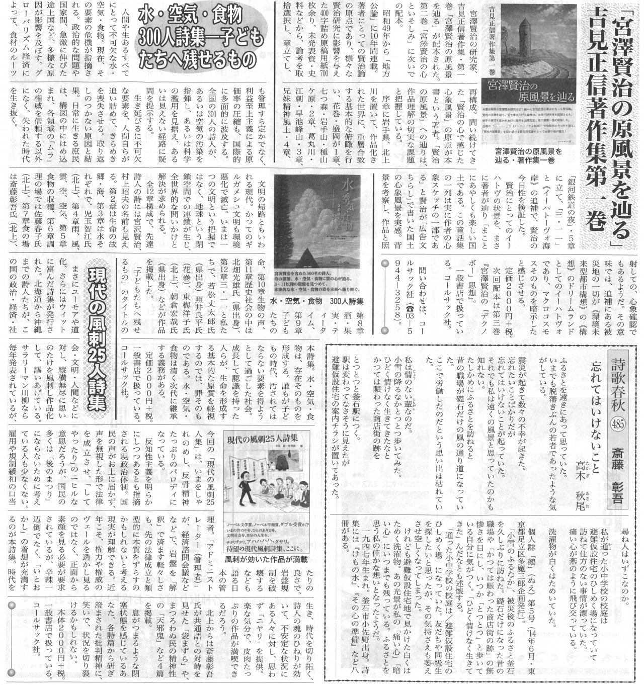 | 2014年10月16日 | 『生きぬくための詩68人詩集』が週刊きたかみで紹介されました |