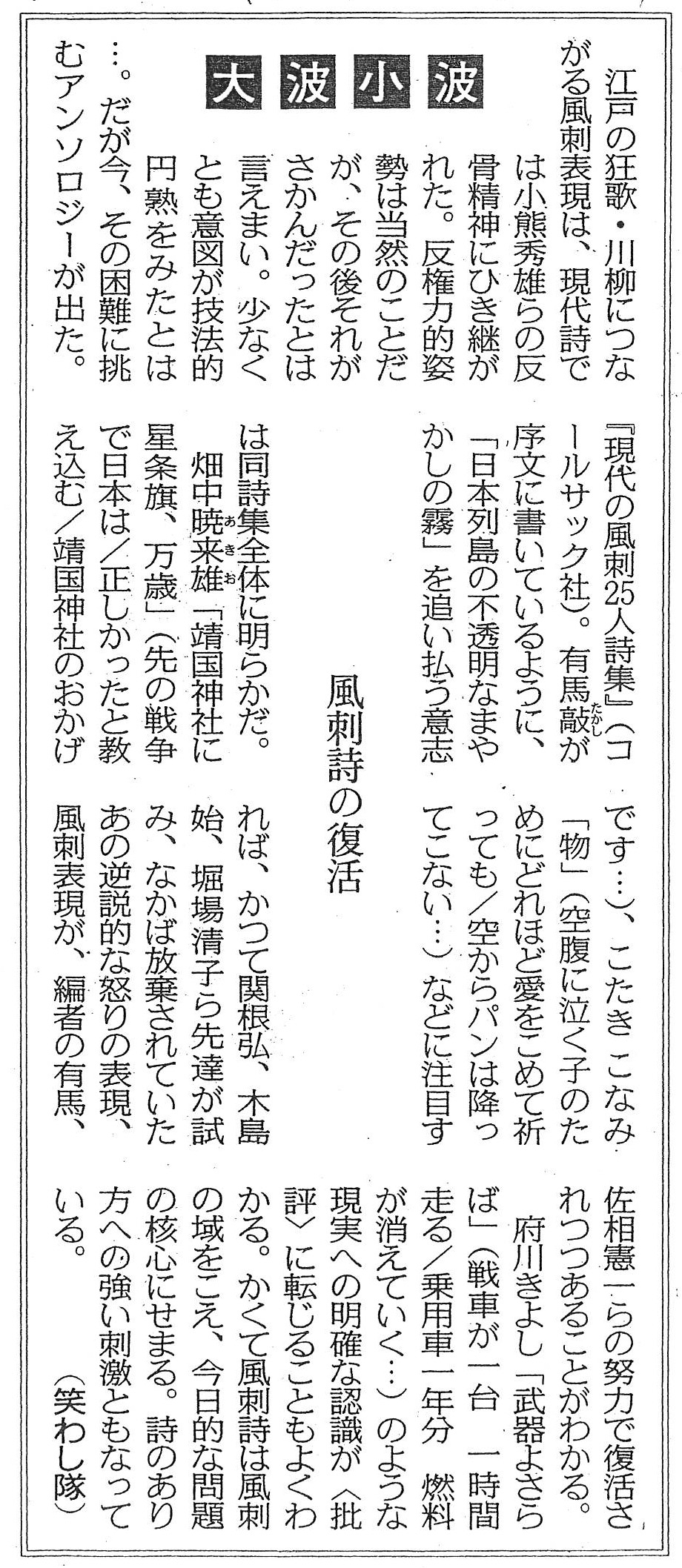 | 2014年08月28日 | 『現代の風刺25人詩集』が東京新聞で紹介されました |