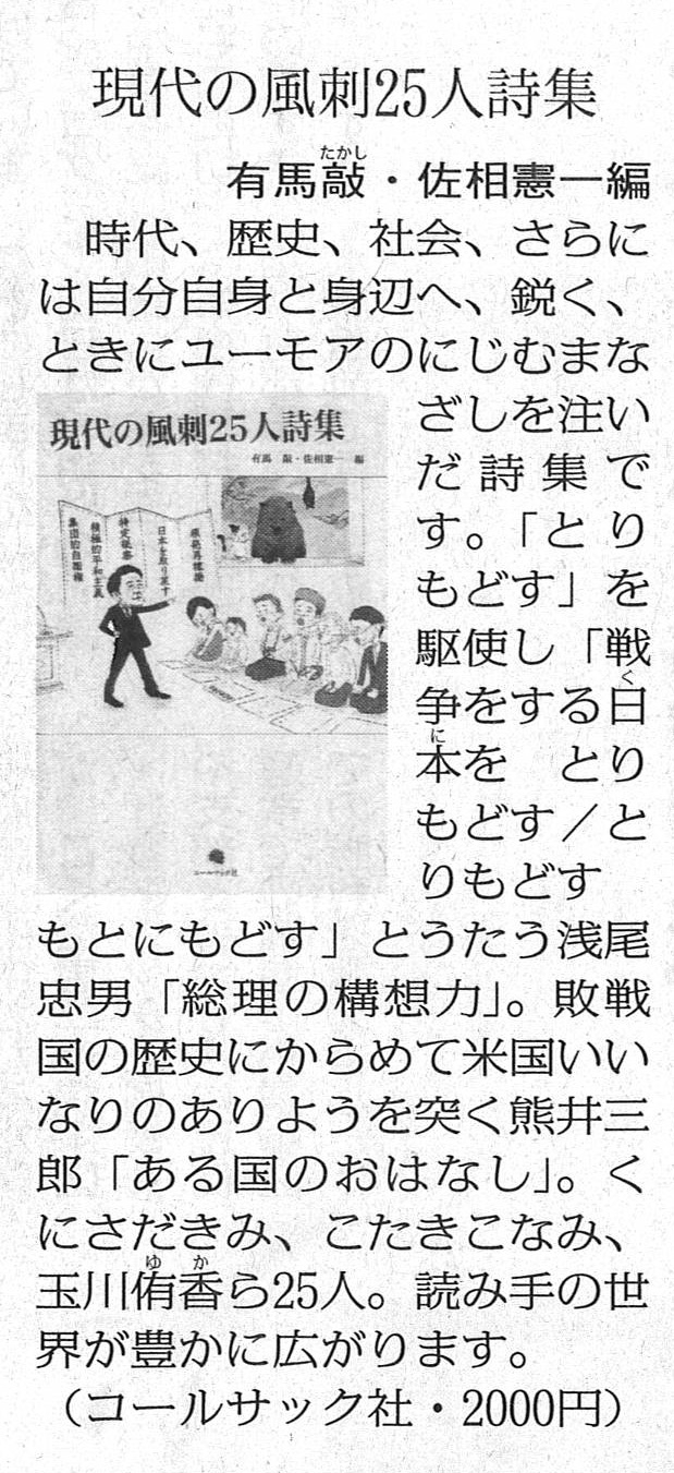 | 2014年11月16日 | 『現代の風刺25人詩集』がしんぶん赤旗で紹介されました |