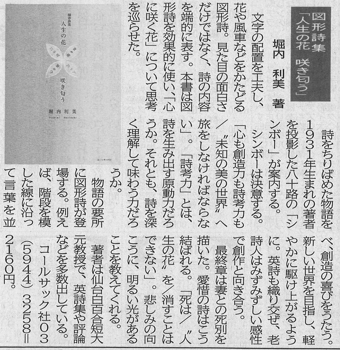 | 2014年04月28日 | 堀内利美図形詩集『人生の花 咲き匂う』が河北新報で紹介されました |