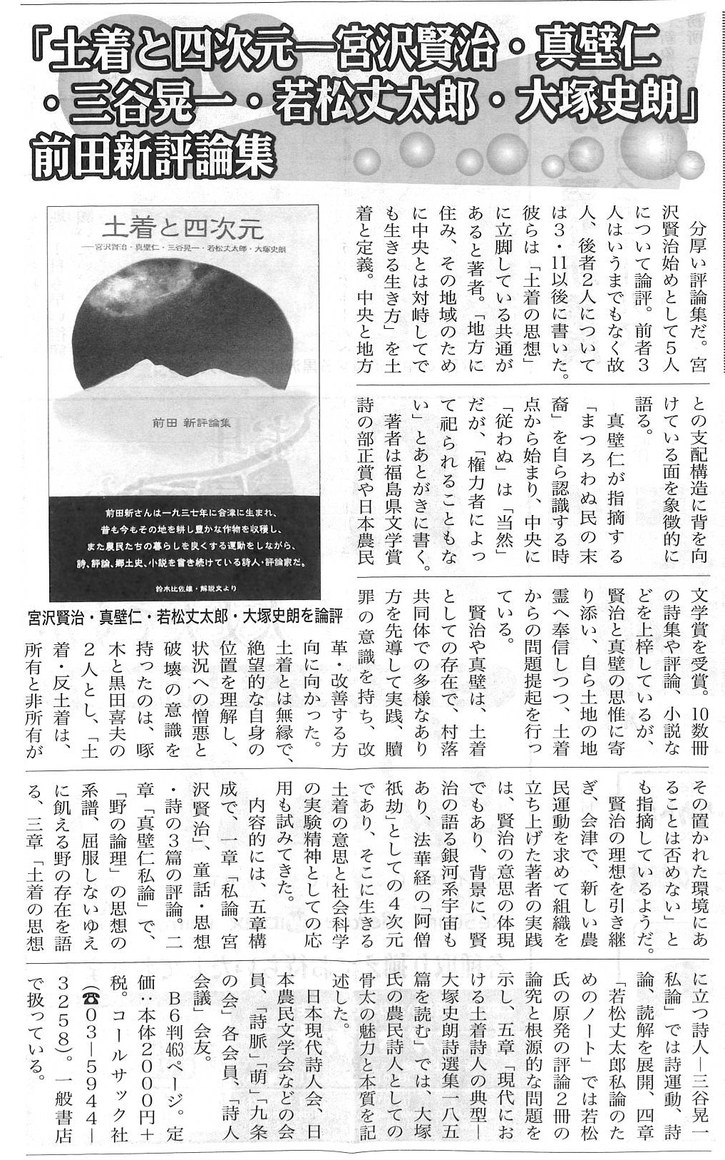 | 2014年05月12日 | 前田新 評論集『土着と四次元』が河北新報で紹介されました |