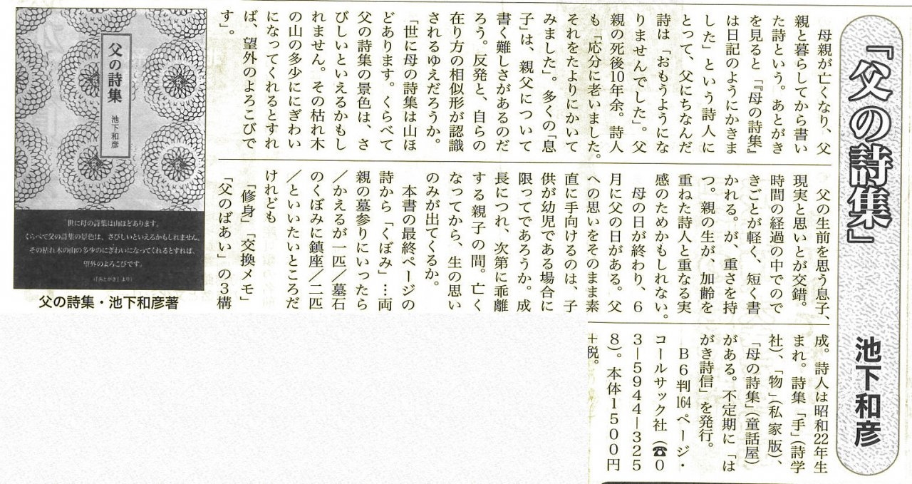 | 2014年05月12日 | 池下和彦『父の詩集』が河北新報で紹介されました |