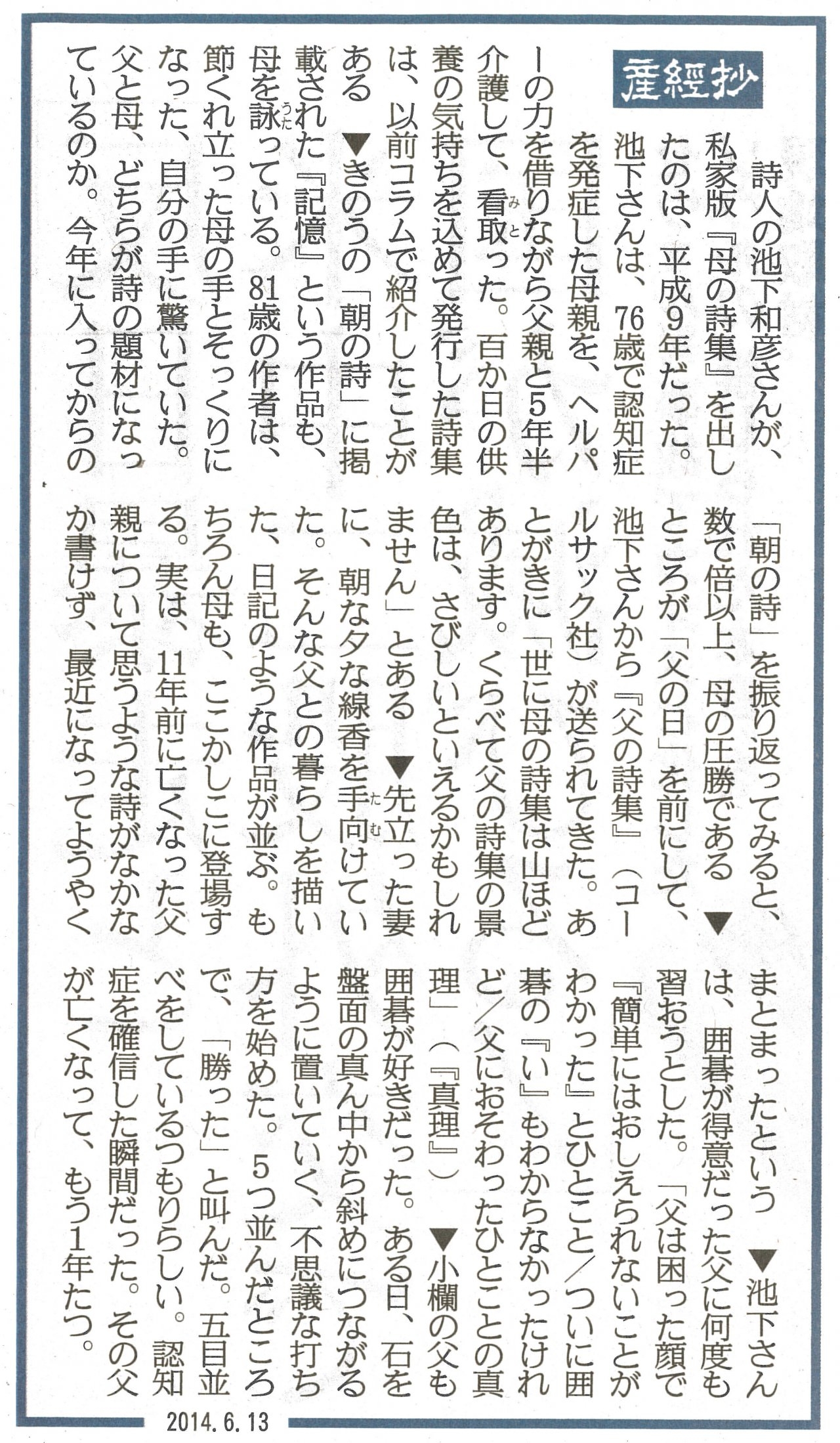 | 2014年06月12日 | 『父の詩集』が産経新聞で紹介されました |