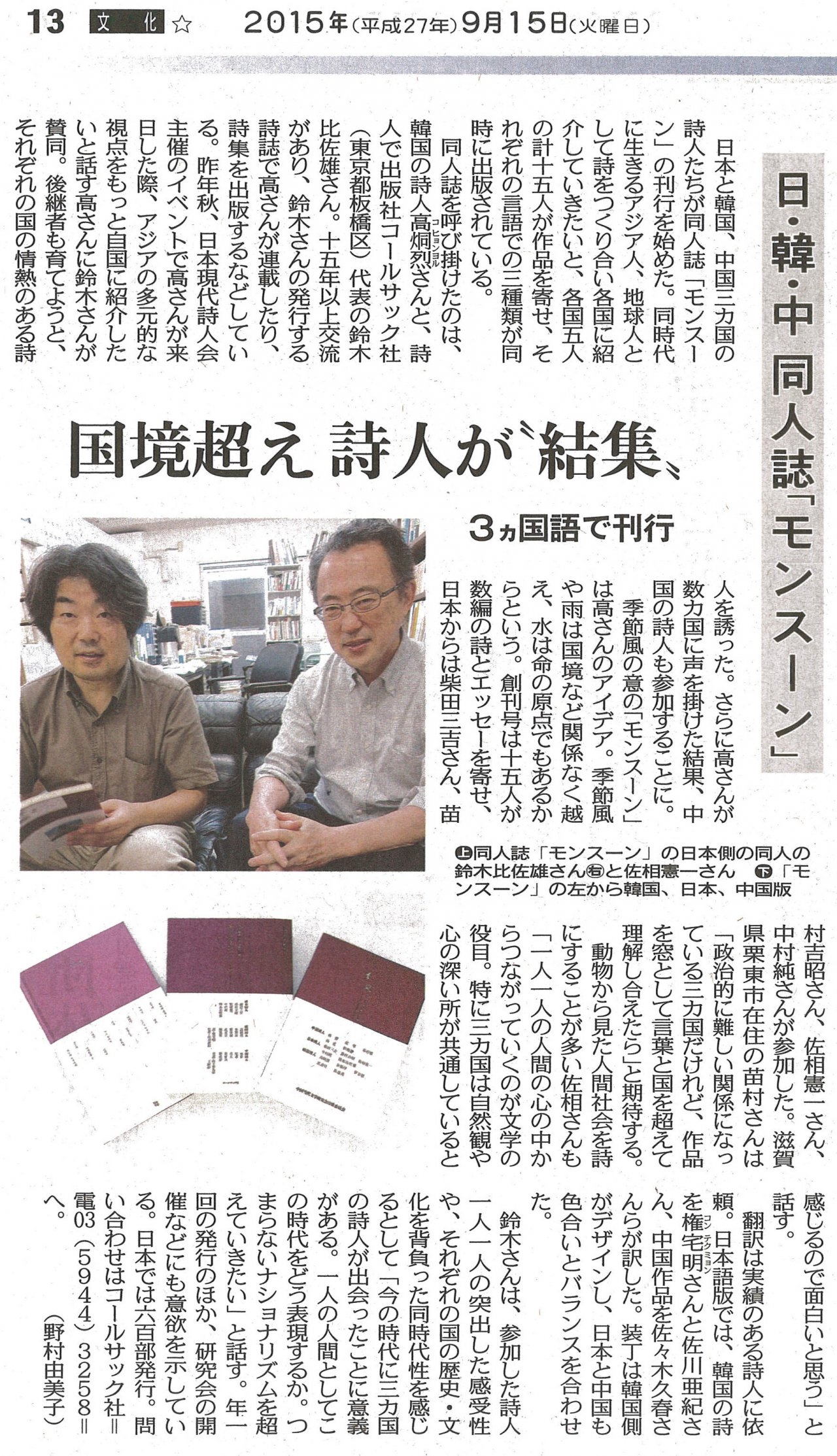 日本・韓国・中国 国際同人誌 「モンスーン」(MONSOON)