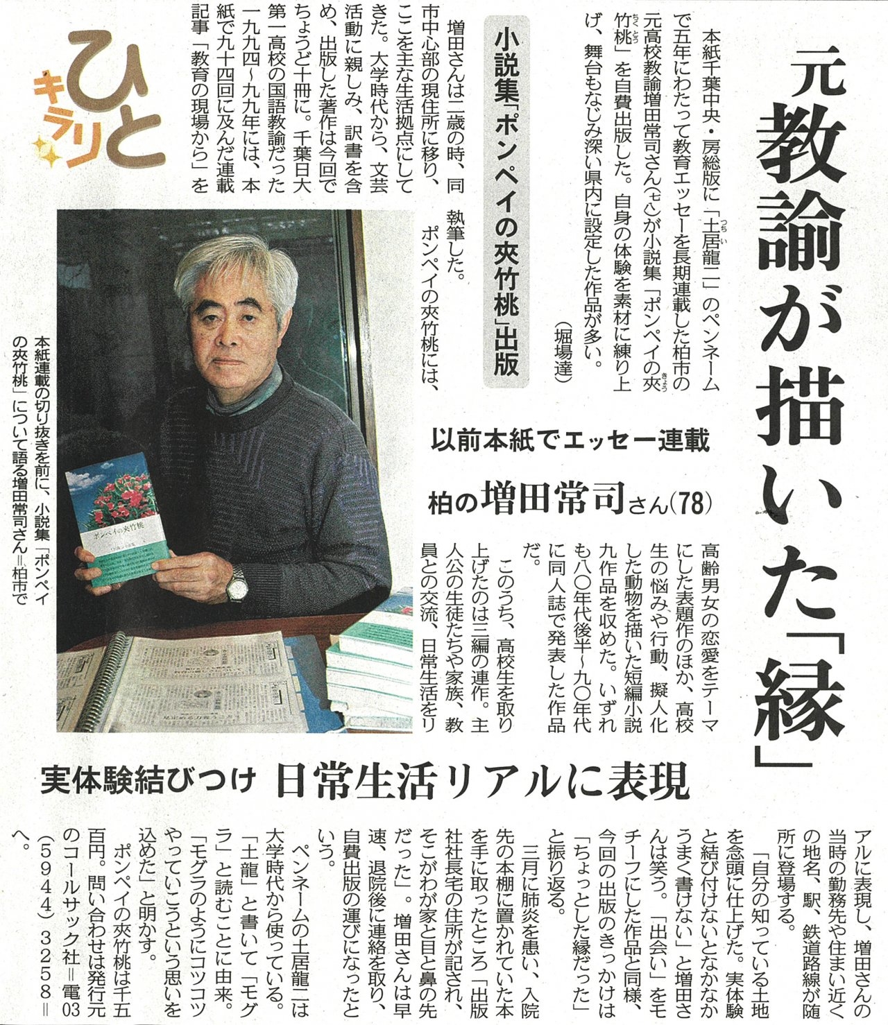| 2016年12月19日 | 土居龍二小説集『ポンペイの夾竹桃』が東京新聞で紹介されました |