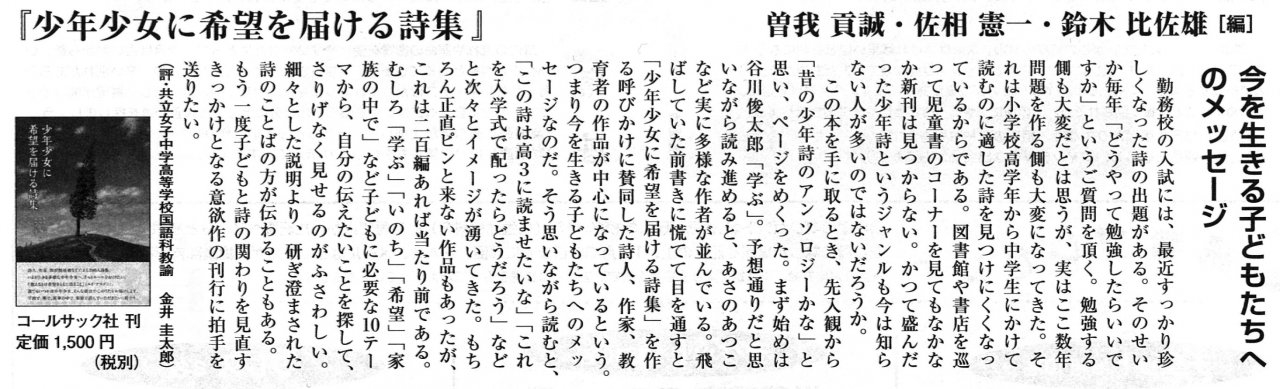 | 2016年12月25日 | 『少年少女に希望を届ける詩集』がしんぶん赤旗で紹介されました |