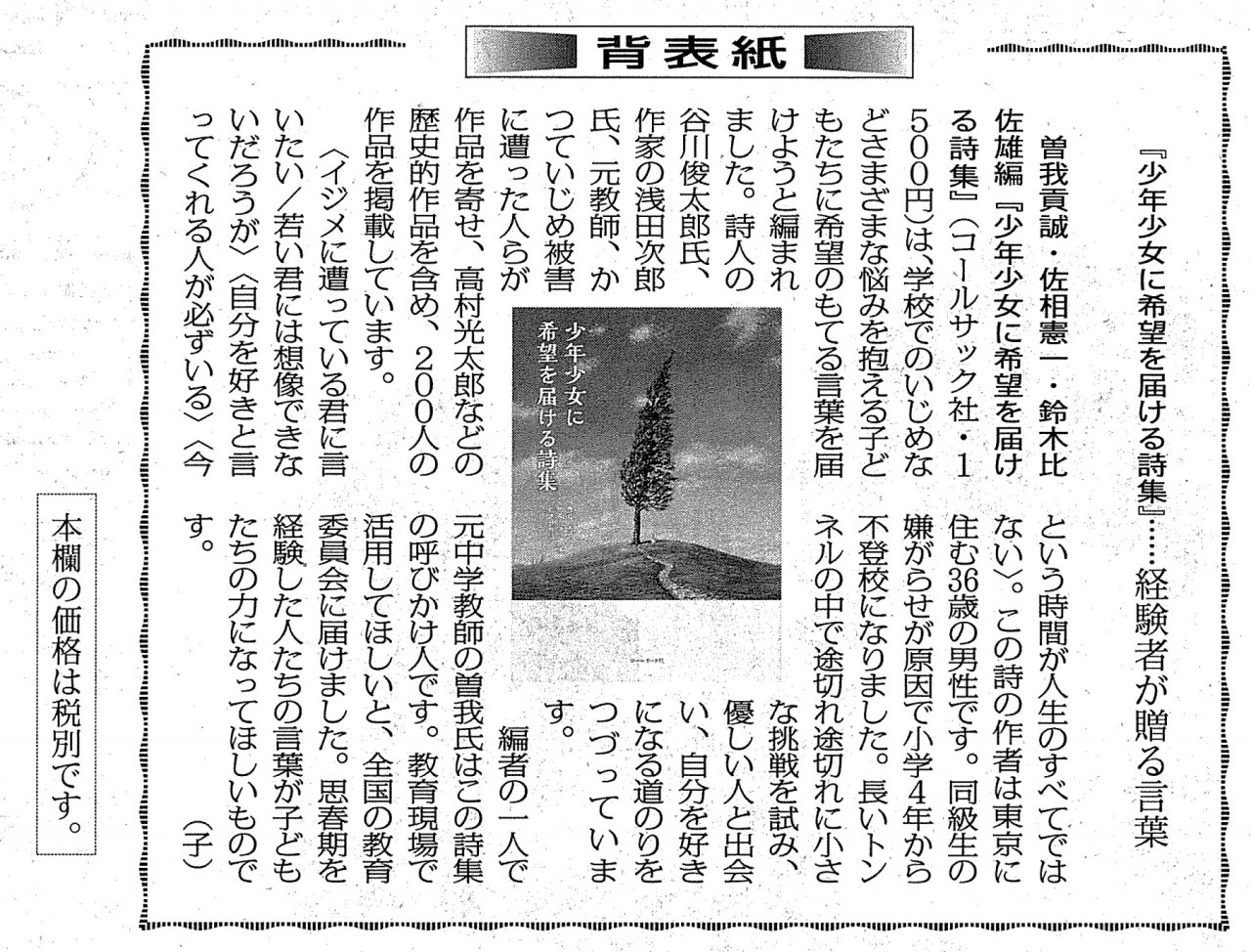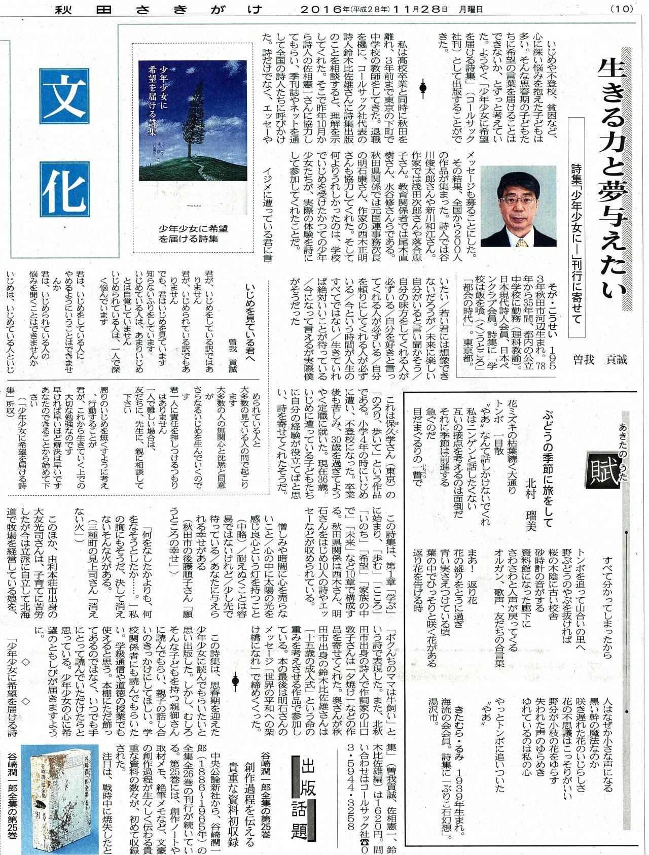 | 2016年10月29日 | 『少年少女に希望を届ける詩集』が秋田魁新報で紹介されました |
