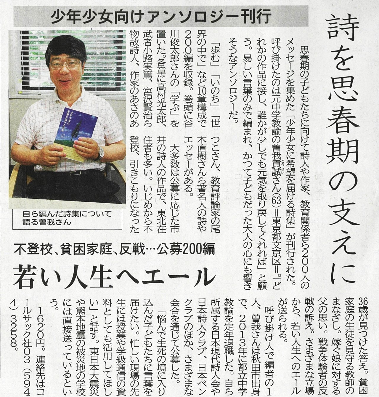 | 2016年08月17日 | 『少年少女に希望を届ける詩集』が河北新報で紹介されました |