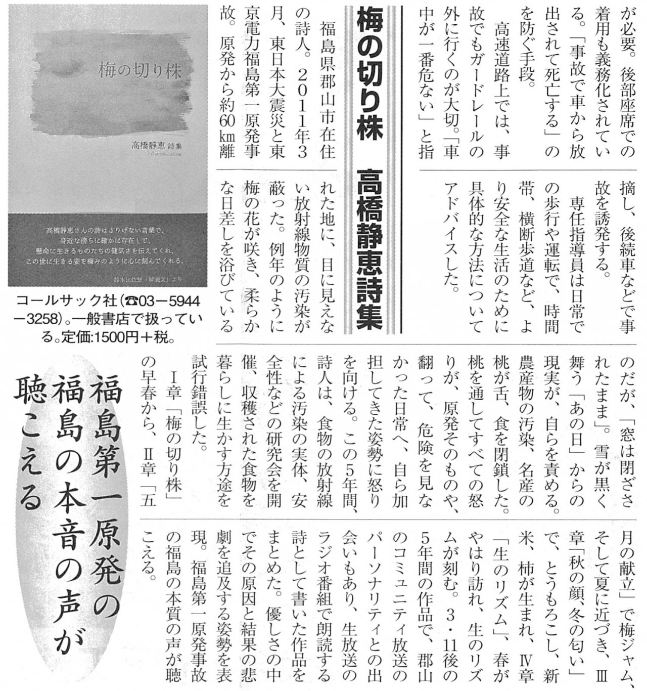 | 2016年08月25日 | 高橋静恵詩集『梅の切り株』が週刊きたかみで紹介されました |