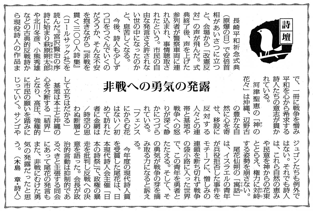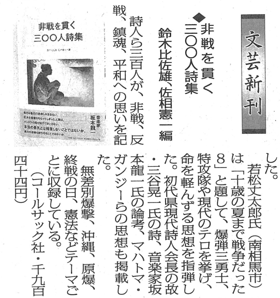 | 2016年08月28日 | 『非戦を貫く三〇〇人詩集』が福島民報で紹介されました |