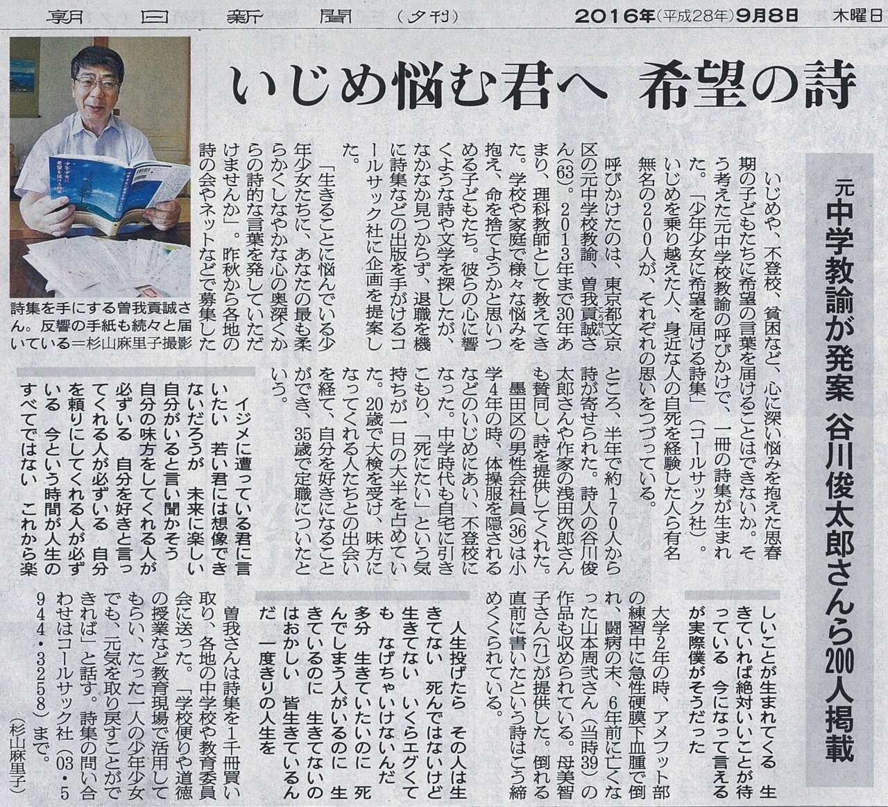 | 2016年09月08日 | 『少年少女に希望を届ける詩集』が朝日新聞で紹介されました |