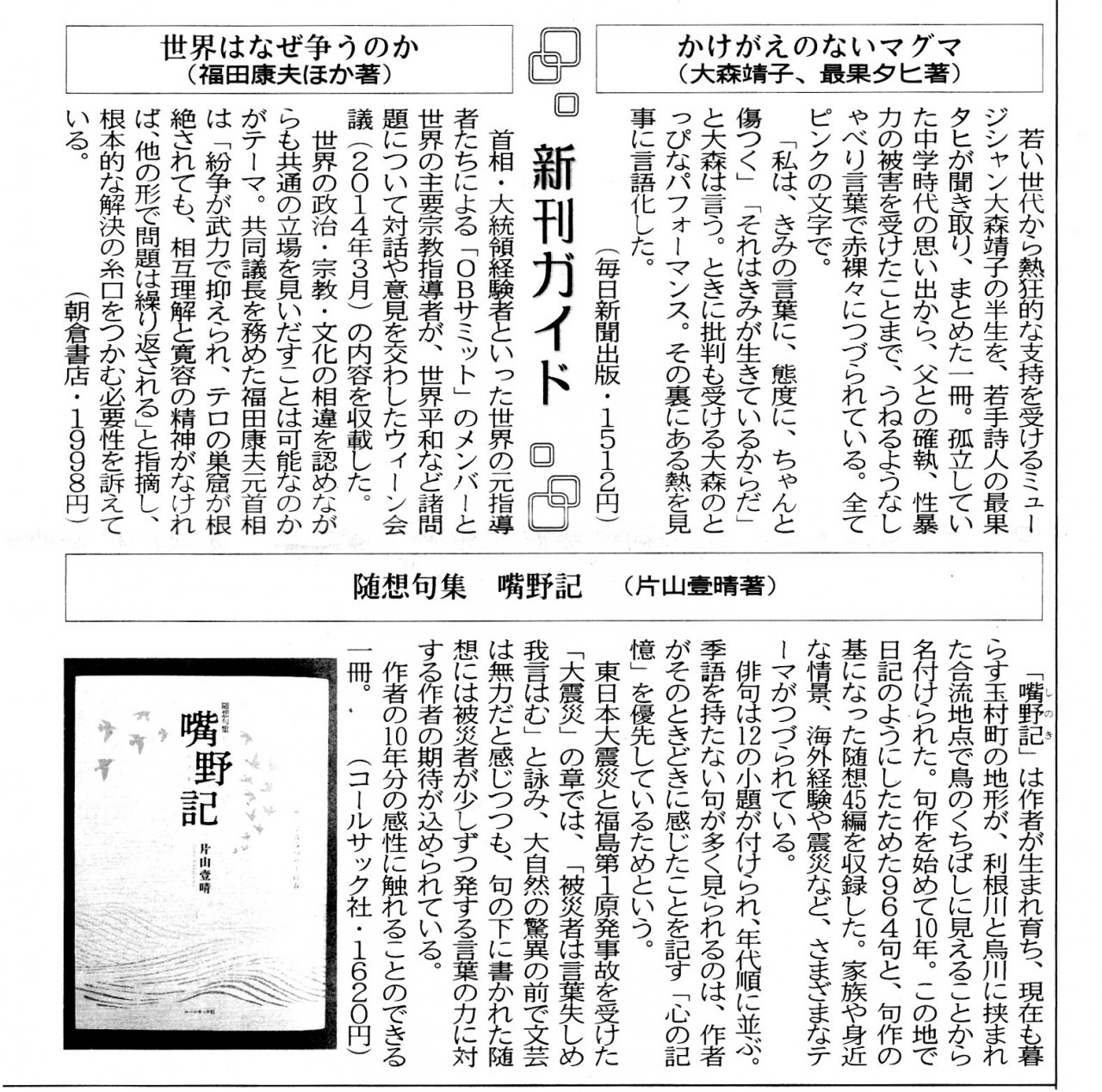 | 2016年05月30日 | 片山壹晴 随想句集『嘴野記』が上毛新聞で紹介されました |