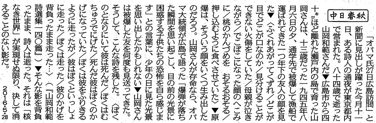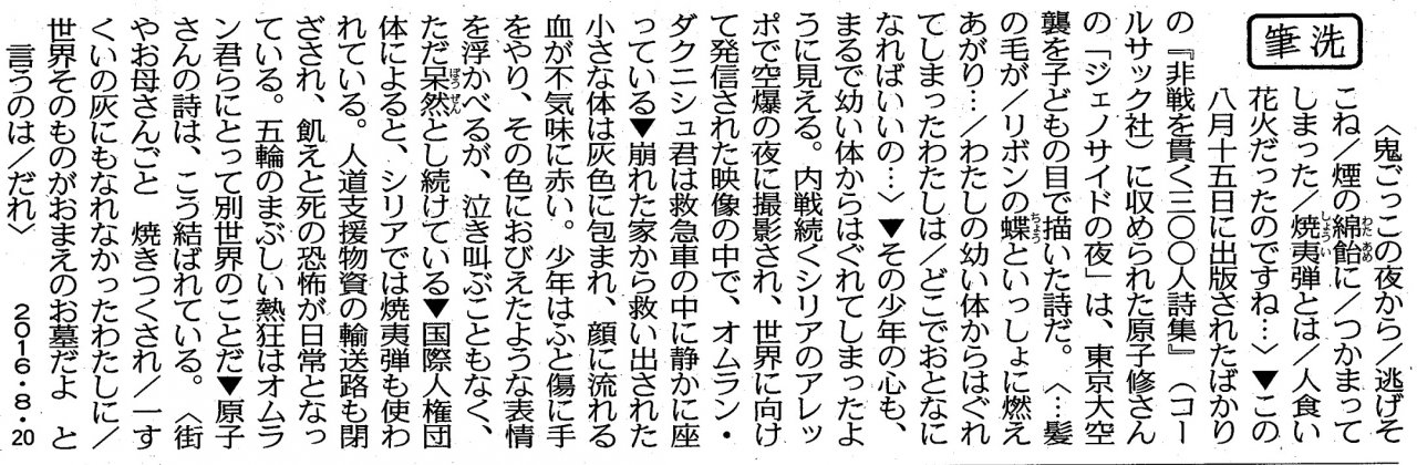 | 2016年08月17日 | 『非戦を貫く三〇〇人詩集』が上毛新聞で紹介されました |