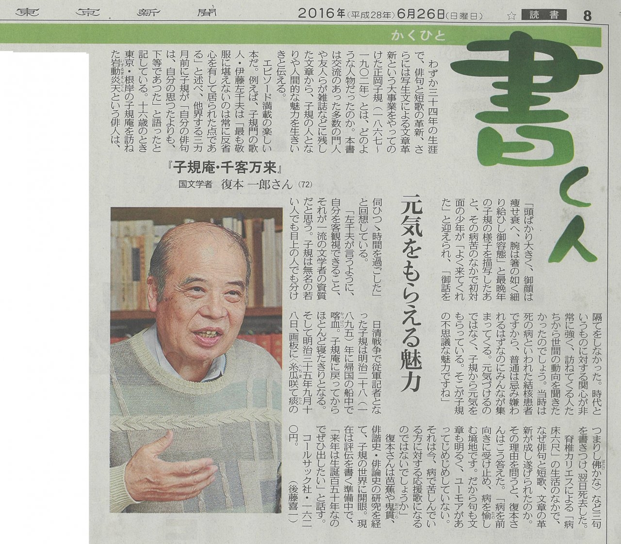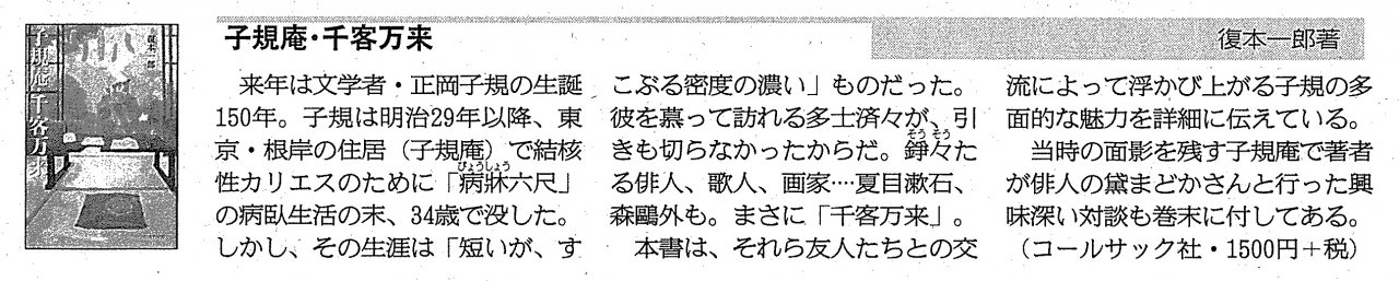 | 2016年06月26日 | 復本一郎『子規庵・千客万来』が東京新聞で紹介されました |