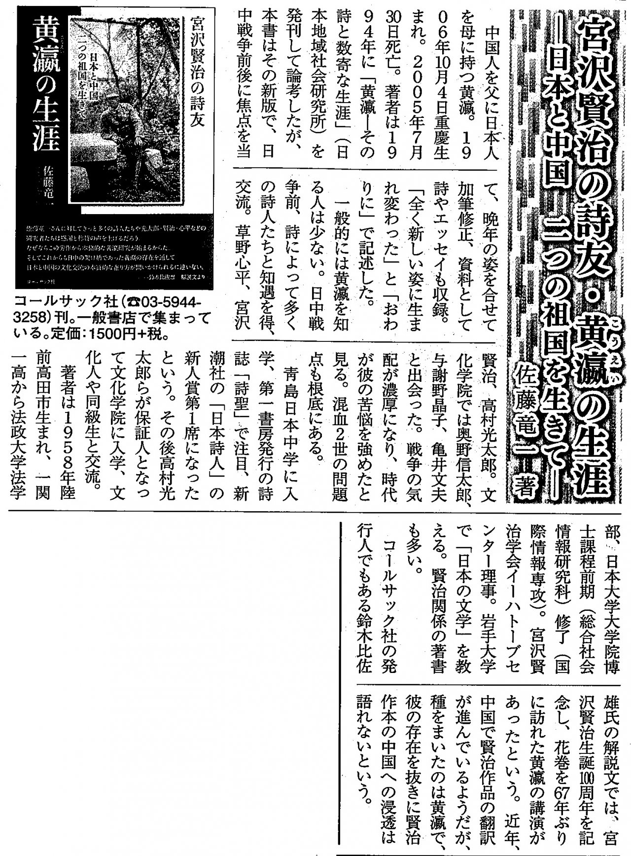 | 2016年06月16日 | 佐藤竜一『宮沢賢治の詩友・黄瀛の生涯―日本と中国 二つの祖国を生きて』が週刊きたかみで紹介されました |