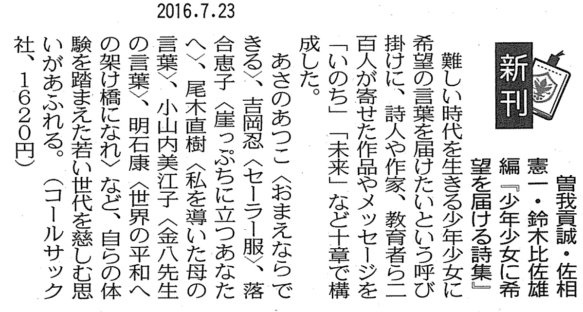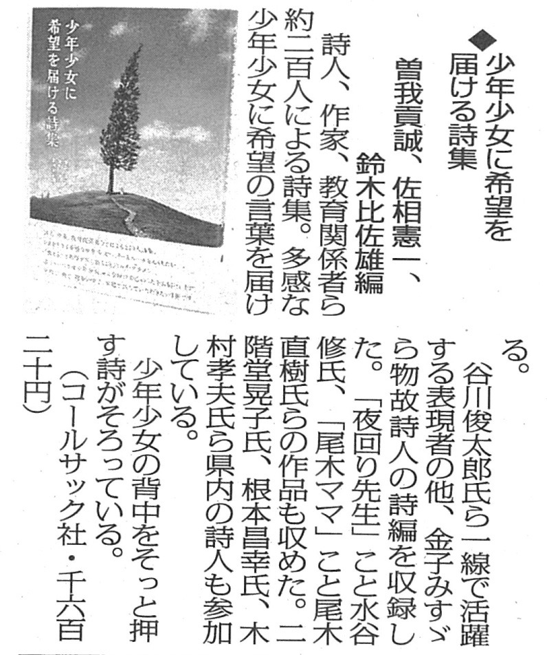 | 2016年07月24日 | 『少年少女に希望を届ける詩集』が福島民報で紹介されました |
