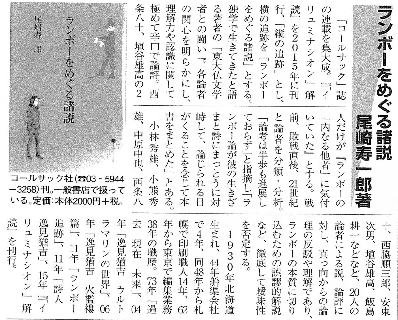 | 2016年08月18日 | 尾崎寿一郎『ランボーをめぐる諸説』が週刊きたかみで紹介されました |