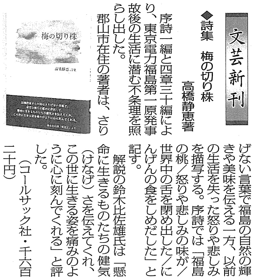 | 2016年08月14日 | 高橋静恵詩集『梅の切り株』が福島民報で紹介されました |