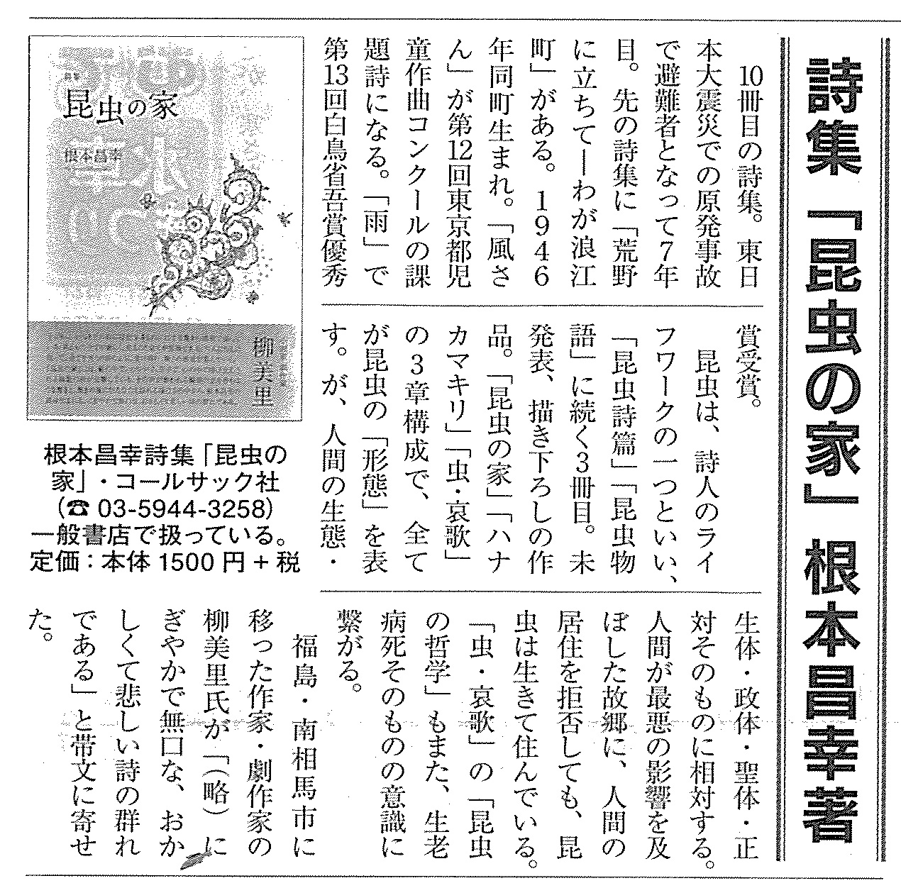 根本昌幸詩集『昆虫の家』