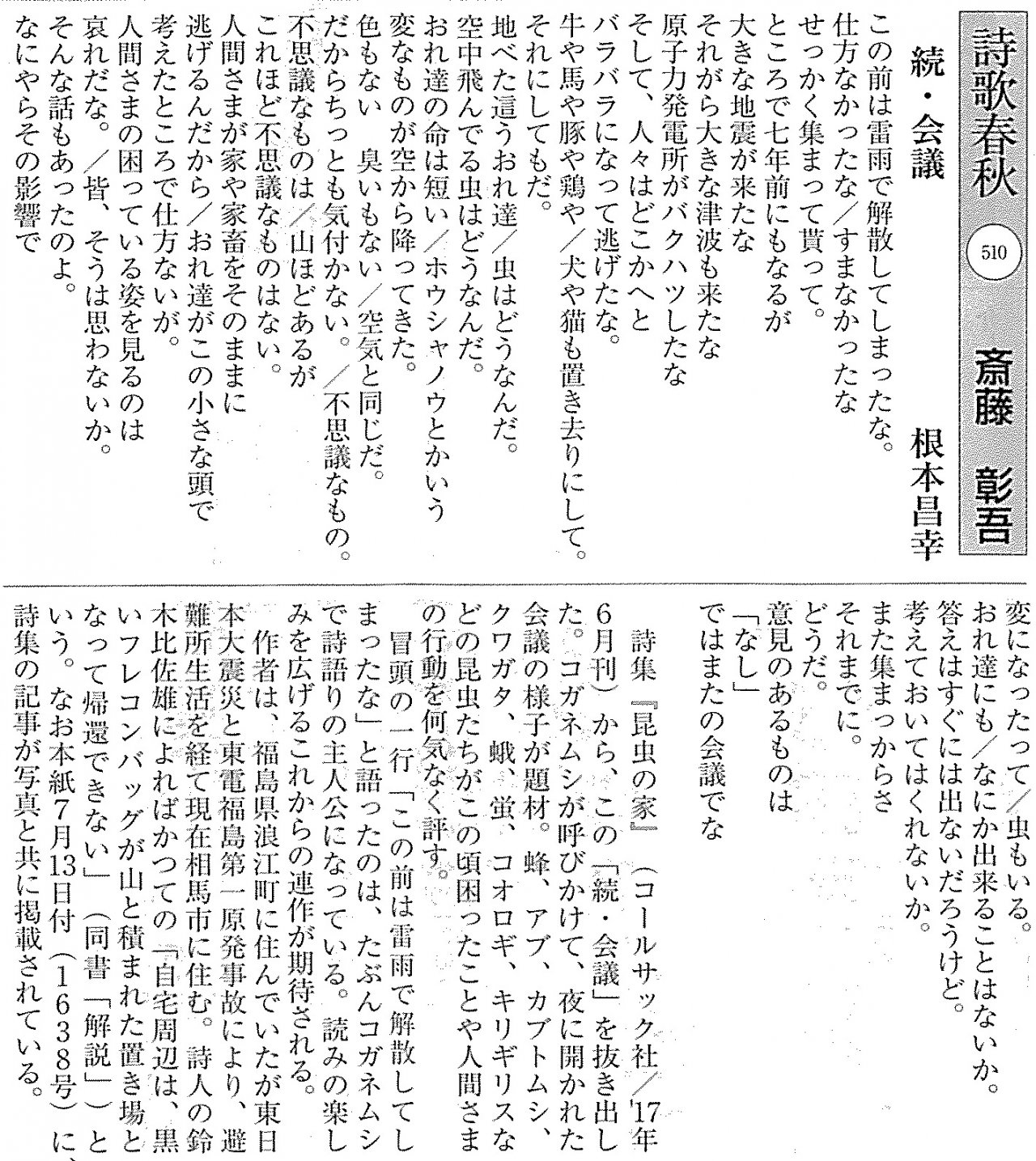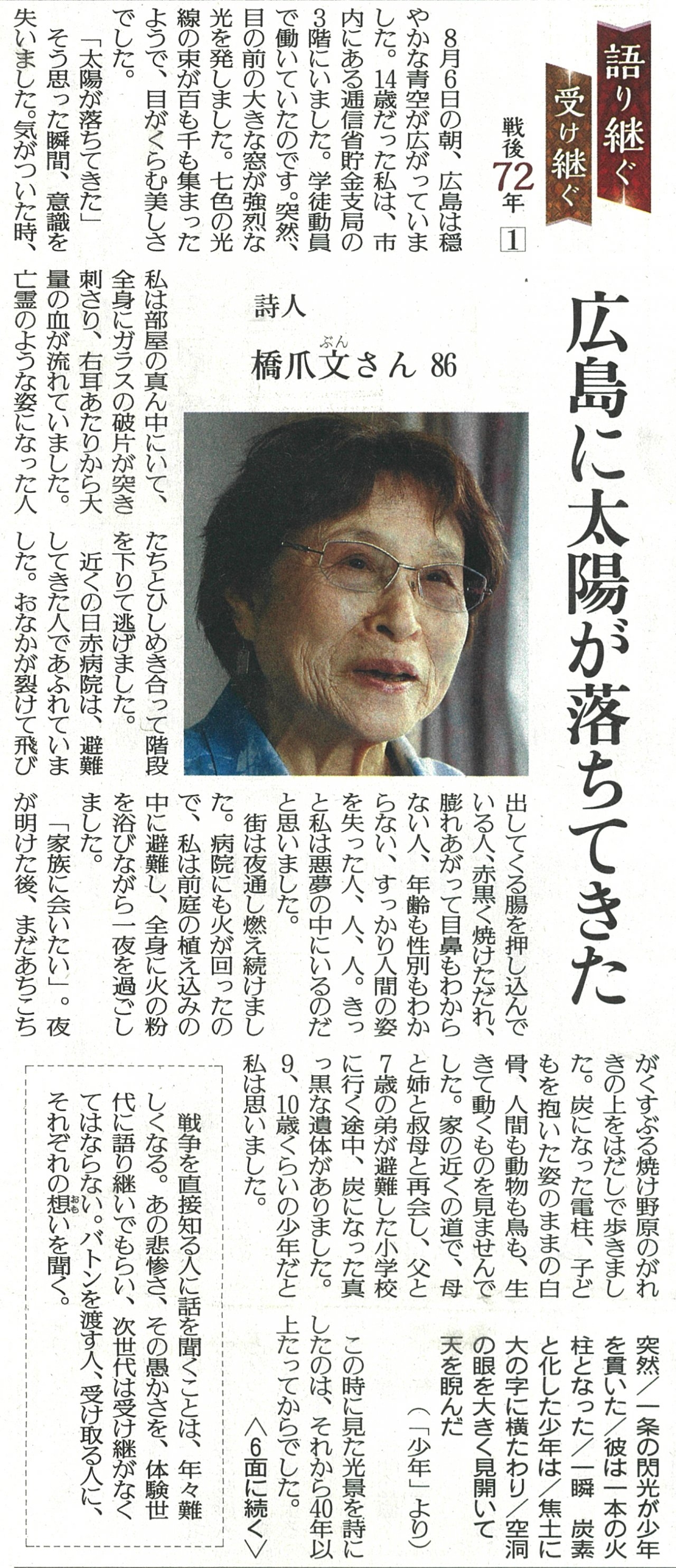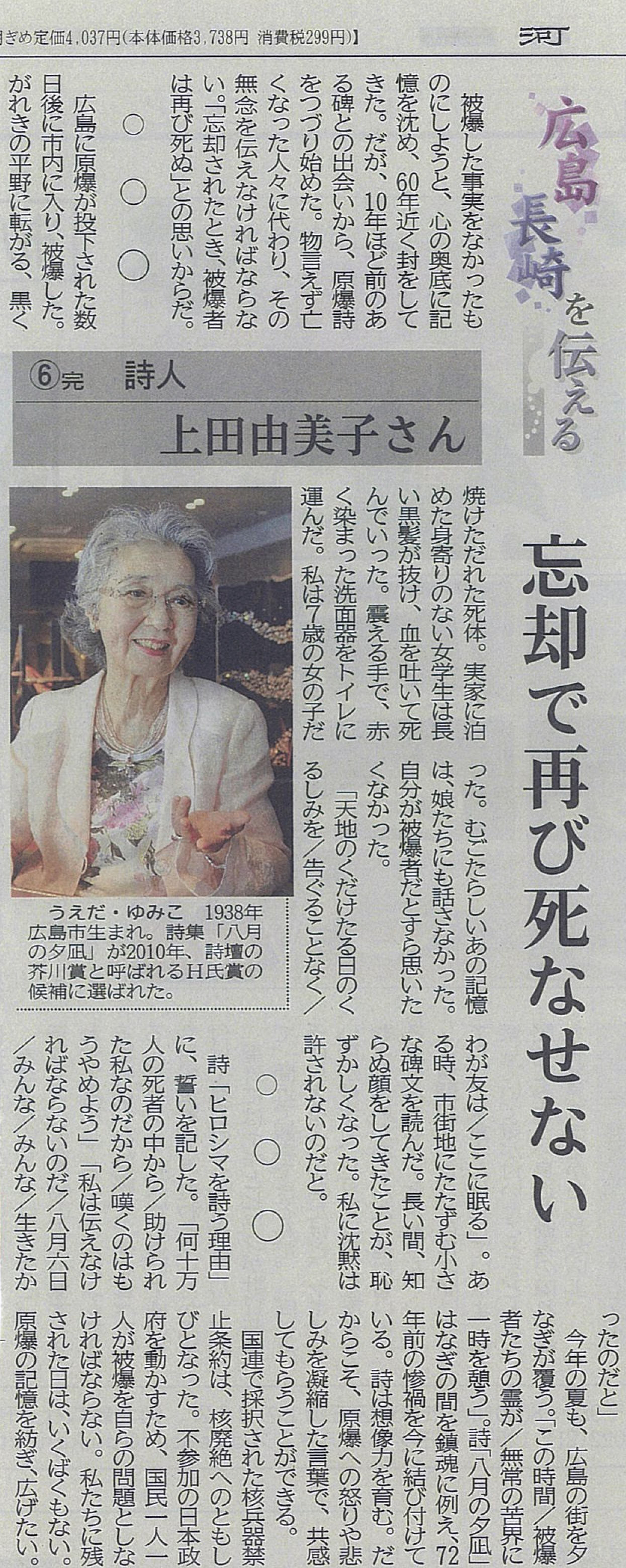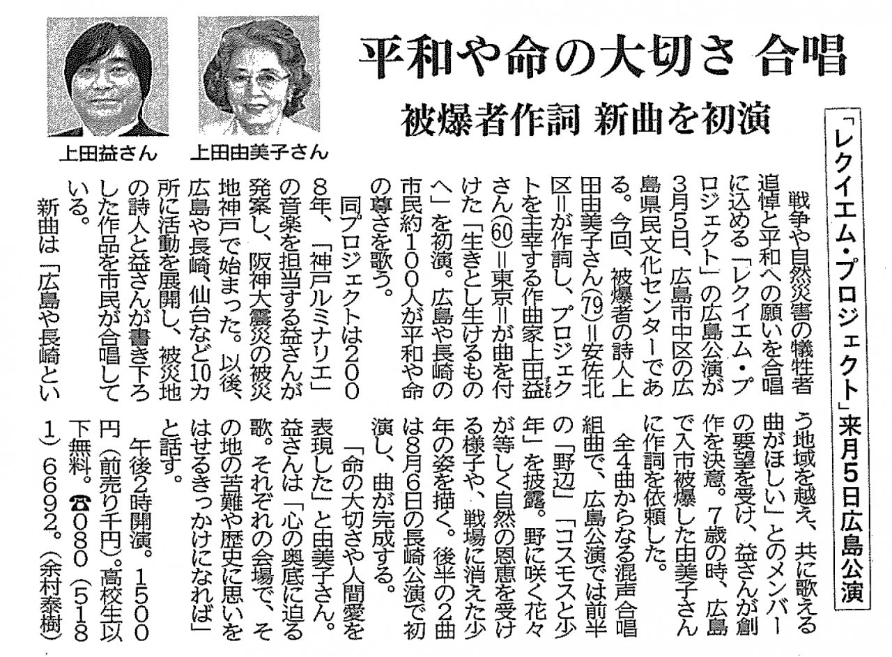「レクイエムプロジェクト」で作詞し、中国新聞で紹介されました