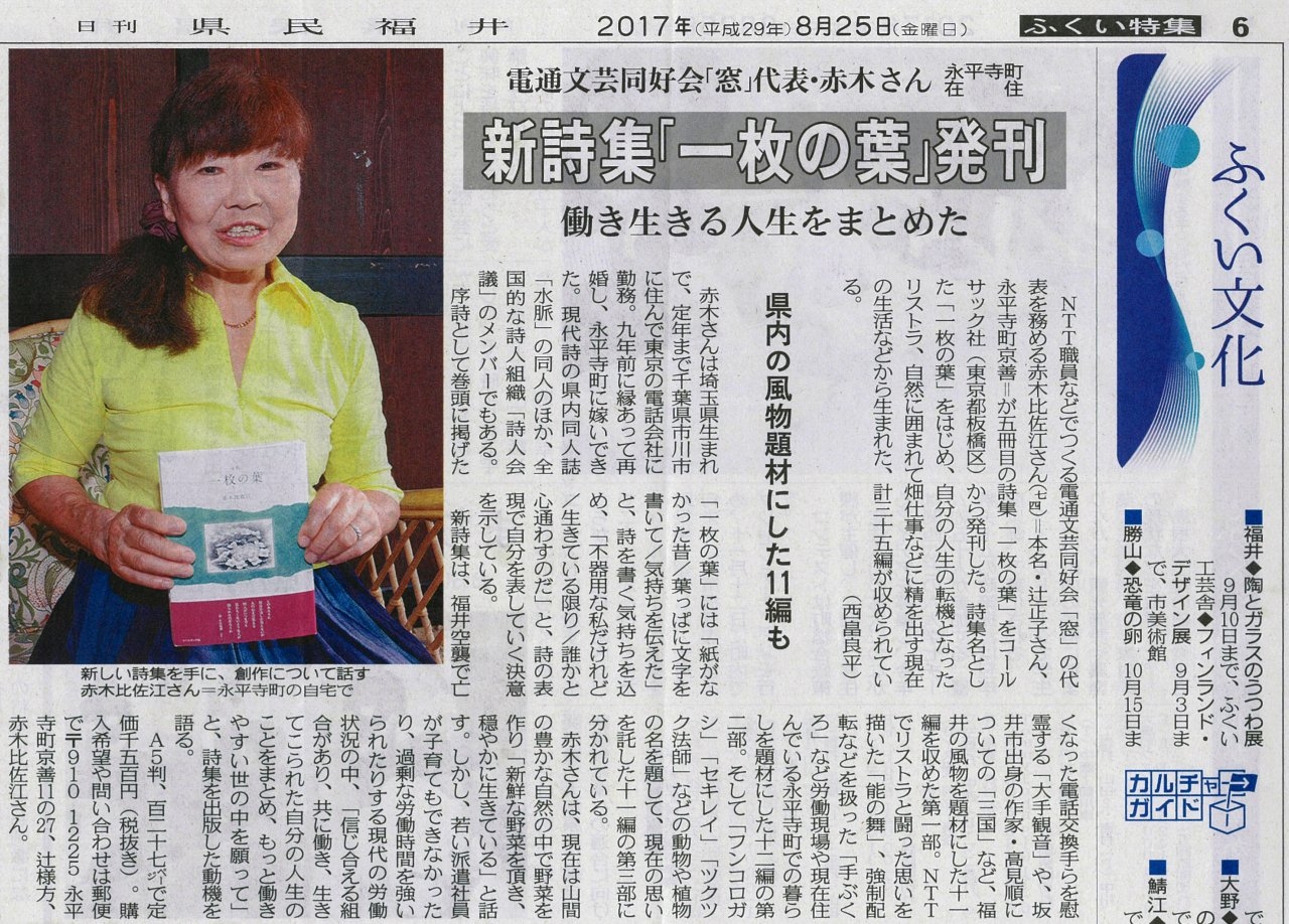 赤木比佐江詩集 『一枚の葉』
