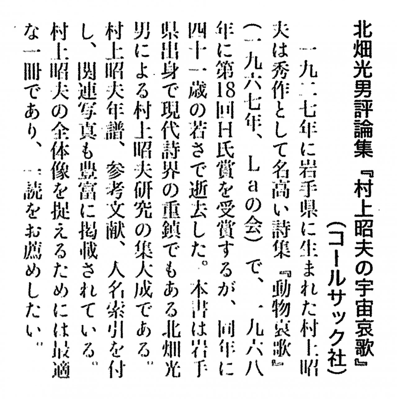 北畑光男評論集『村上昭夫の宇宙哀歌』