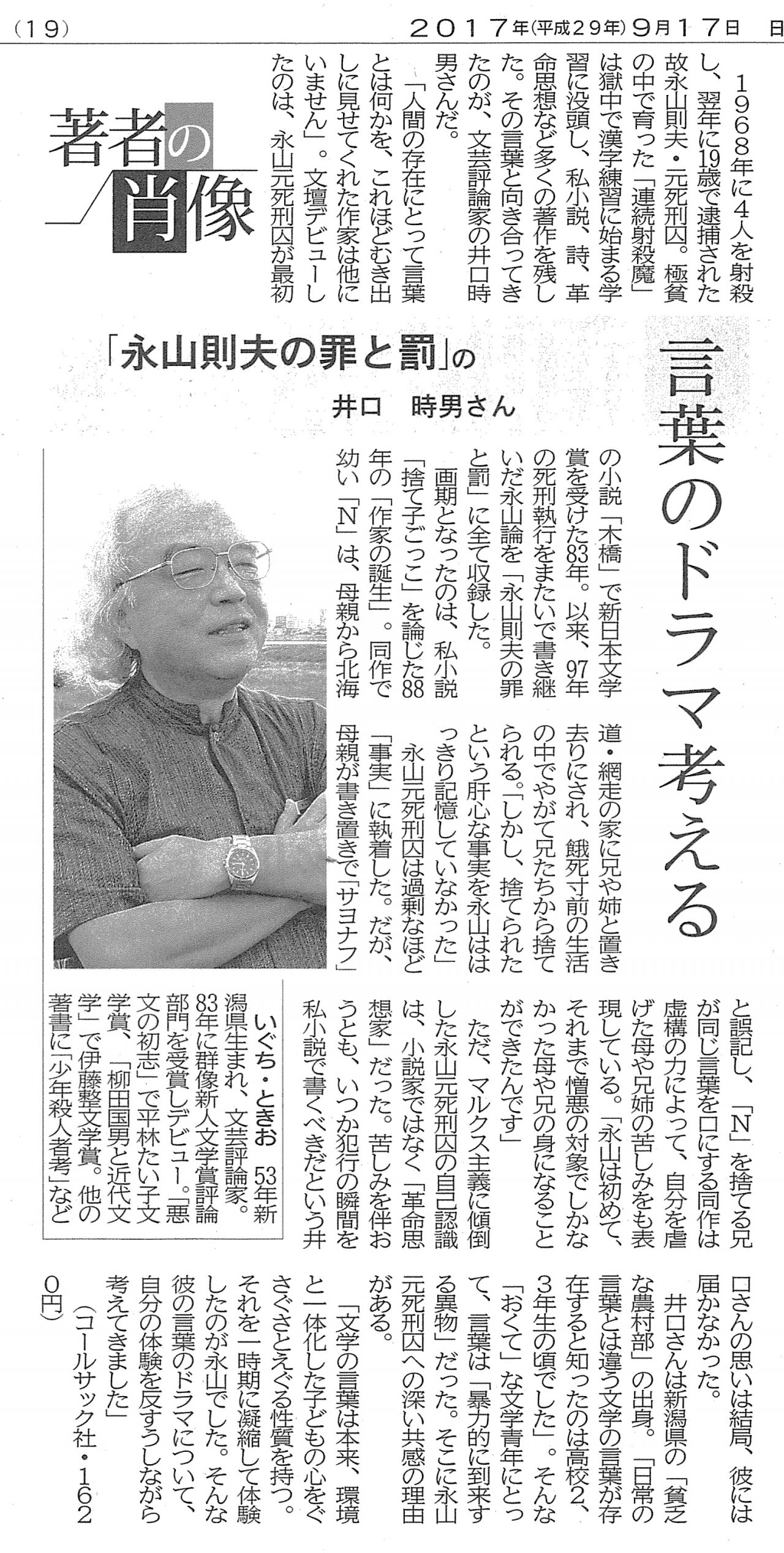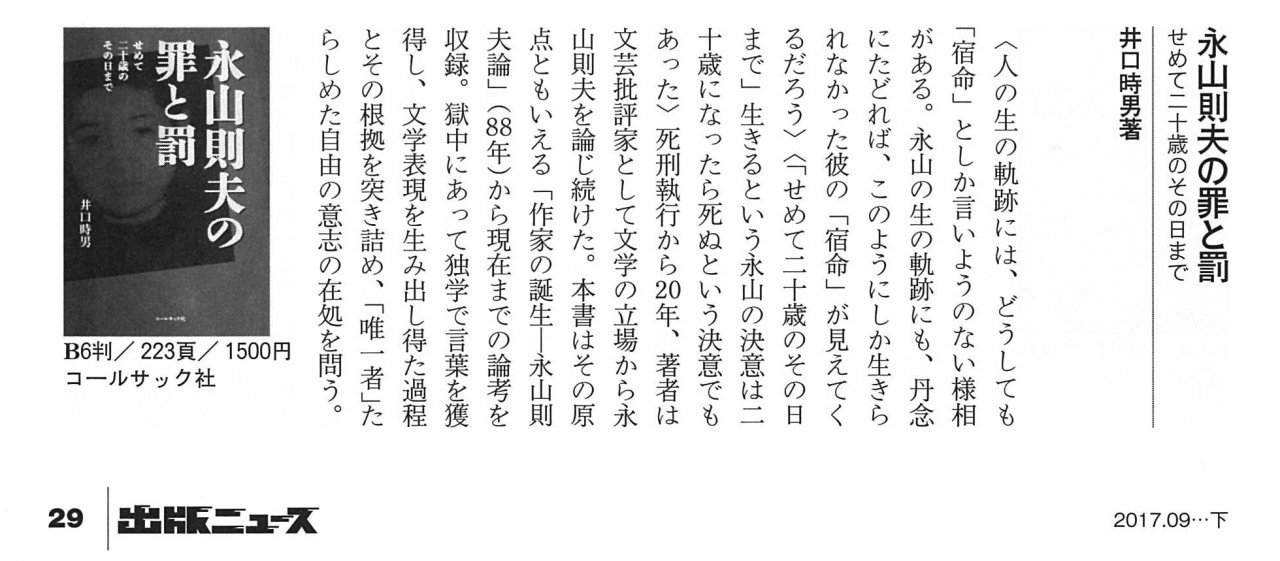 井口時男 評論集『永山則夫の罪と罰―せめて二十歳のその日まで』