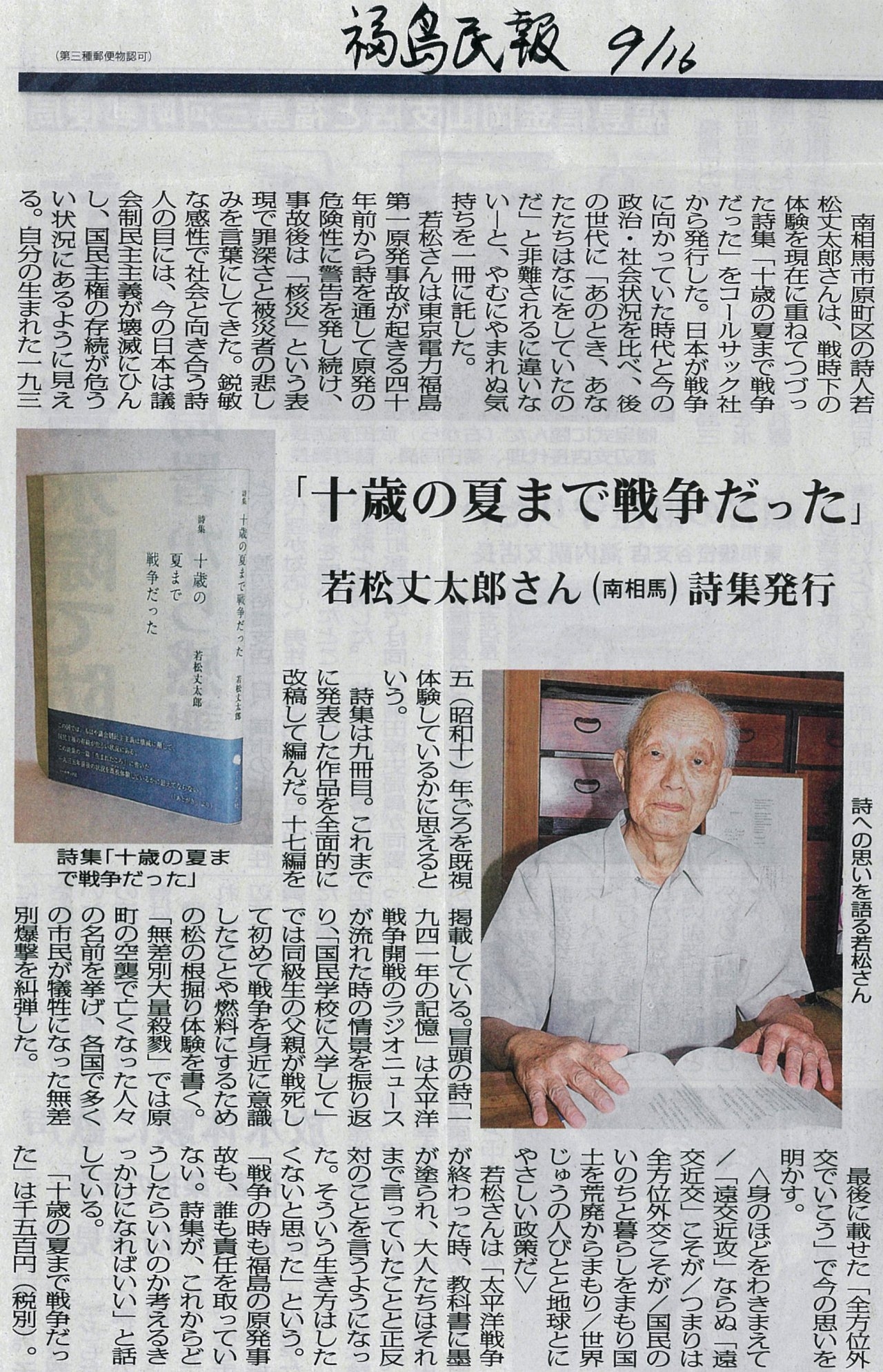 若松丈太郎詩集『十歳の夏まで戦争だった』