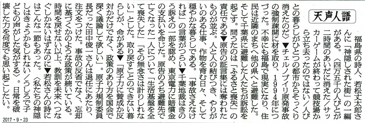 共同通信社から配信され、秋田さきがけ他で掲載されました