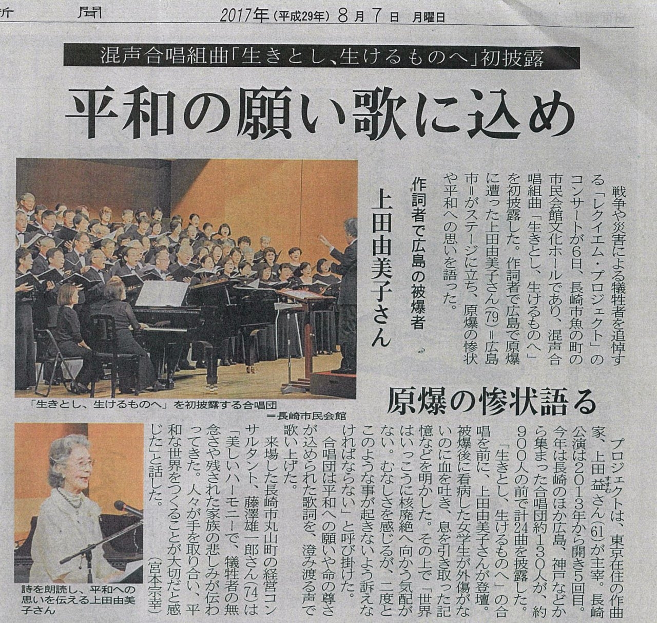 「レクイエムプロジェクト」で作詞し、長崎新聞で紹介されました