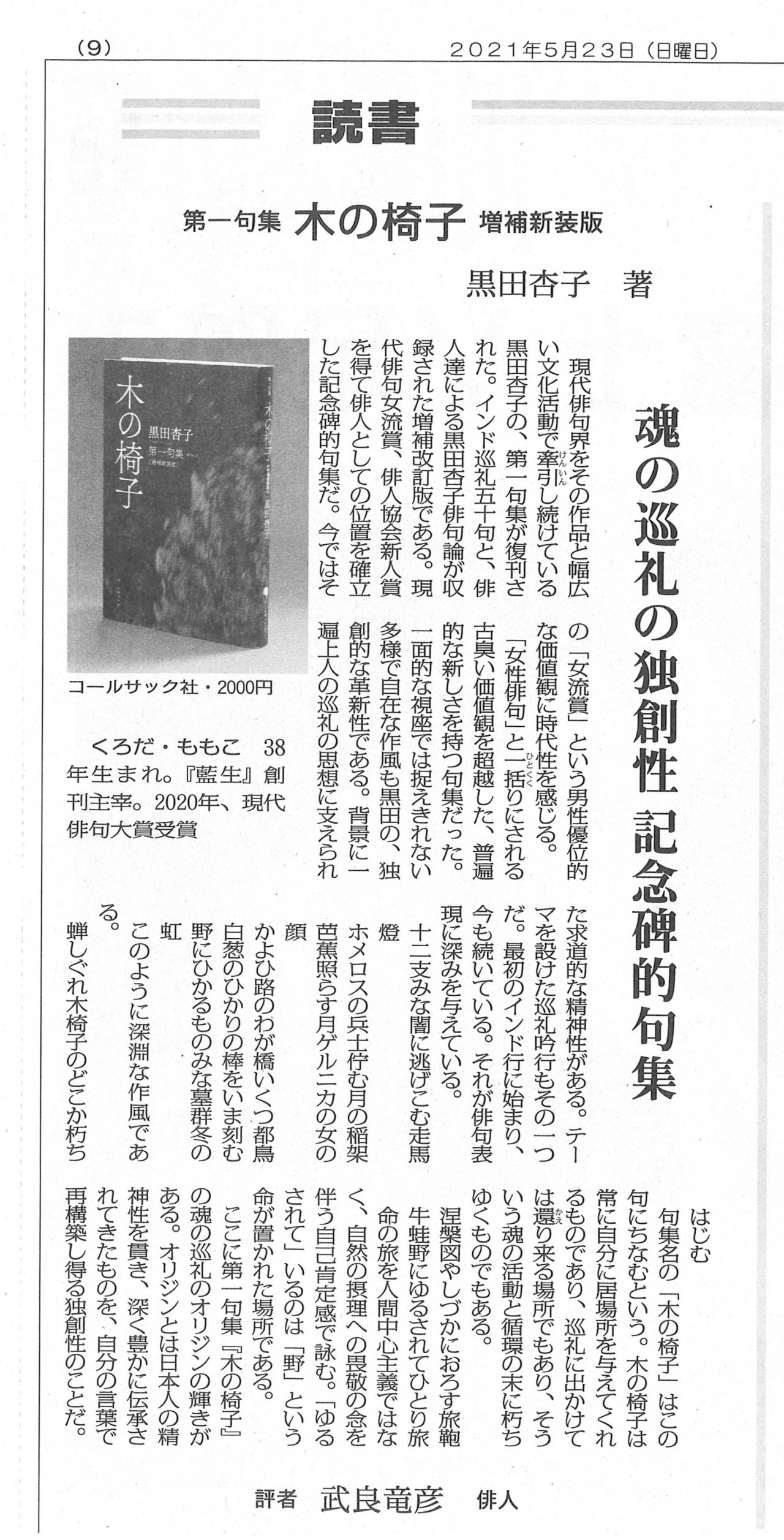 読売新聞書評欄で、作家の宮部みゆきさんに