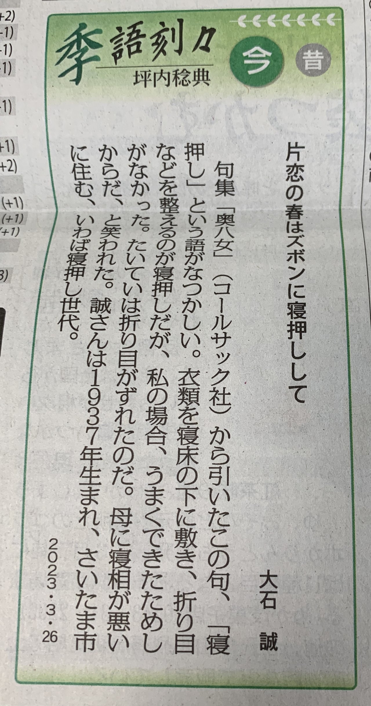 | 2023年03月05日 | 大石誠句集『奥八女』が、毎日新聞で取り上げられました |